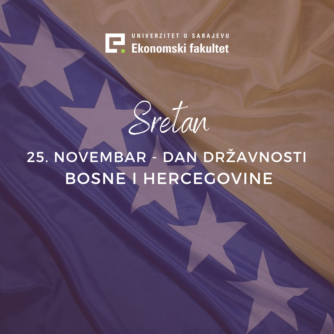 Univerzitet u Sarajevu - Ekonomski fakultet svim sugrađanima i sugrađankama upućuje iskrene čestitke povodom predstojećeg 25. novembra – Dana državnosti Bosne i Hercegovine!