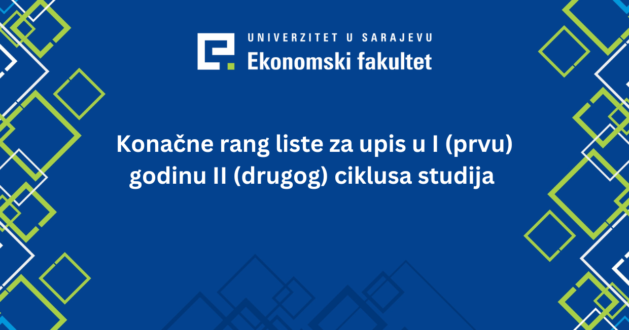 u prilogu se objavljuju Konačne rang liste primljenih kandidata u prvu godinu drugog ciklusa studija na Univerzitetu u Sarajevu – Ekonomskom fakultetu za akademsku 2025/2026. godinu.